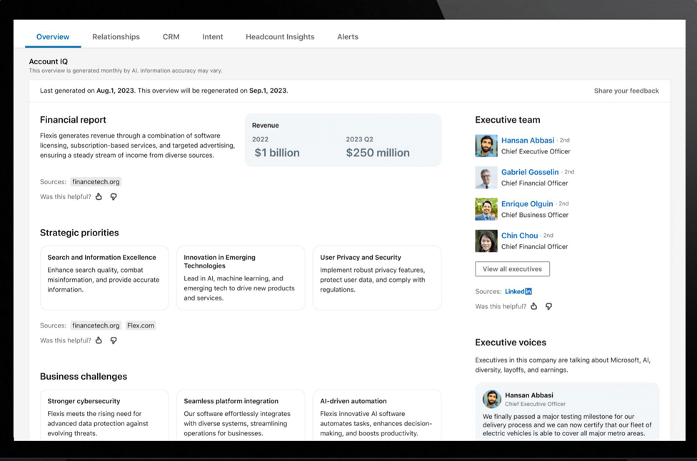 Account IQ se encargará de recopilar la información más importante y de entregarte un resumen valioso, directamente en Sales Navigator, facilitando conversaciones más productivas y un entendimiento detallado de las prioridades y pain points de tus cuentas objetivo.